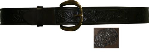 Lonesome Charlie's Leather Tooled Belt 814BT-48, Basketweave/Target, 1-1/2" Wide, Dark Brown Finish, Size 48